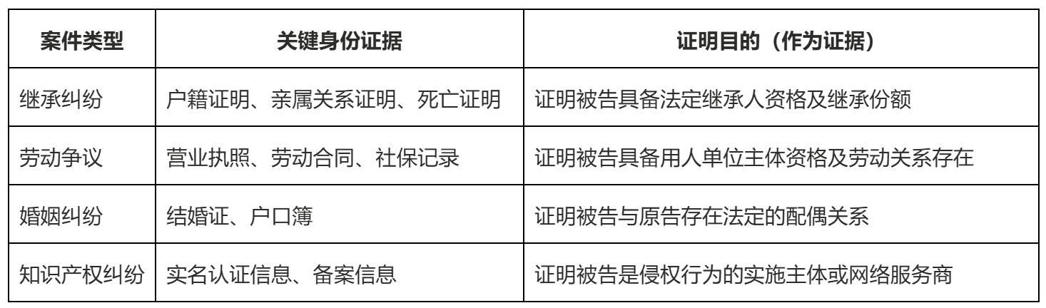 原告必须提交一整套“身份证据链”来确立诉讼格局 :